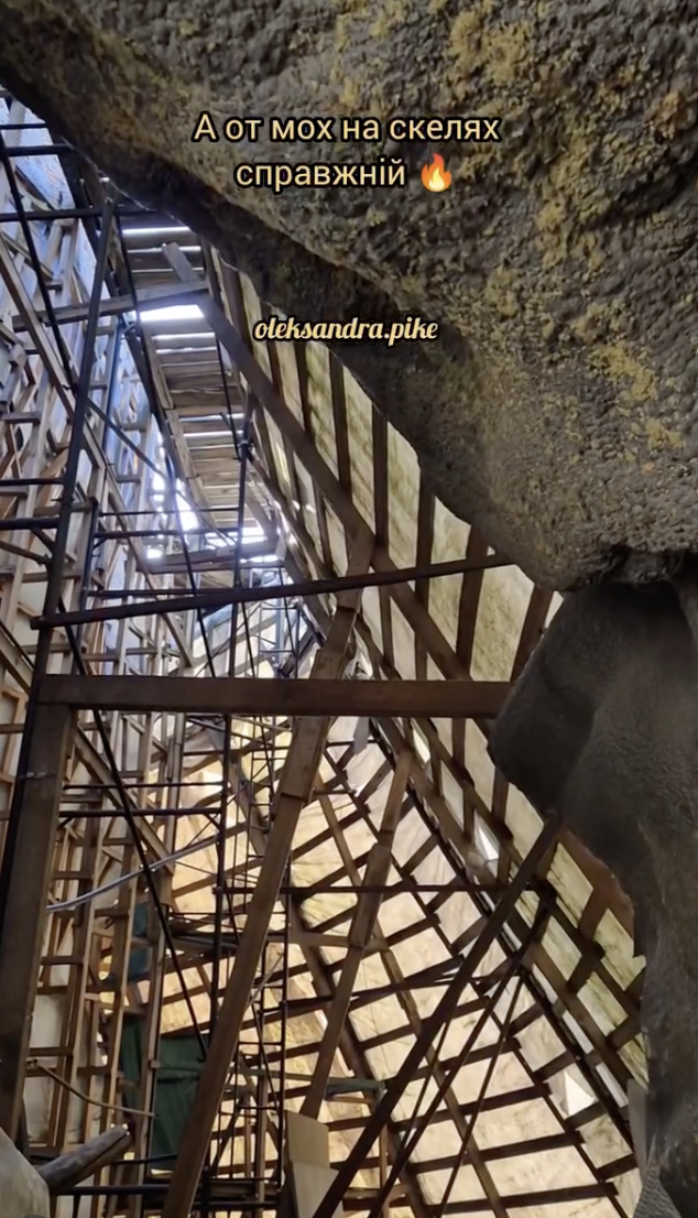 "Знаменитые скалы, конечно, поражают своим размером. Можно даже пройти в пещеру, чтобы увидеть, что там внутри и как они сделаны. А вот мох на скалах настоящий. В кинодеревне есть и настоящая крепость. Деревянное трехэтажное здание с множеством интересных элементов и реквизитов", — рассказала автор ролика.