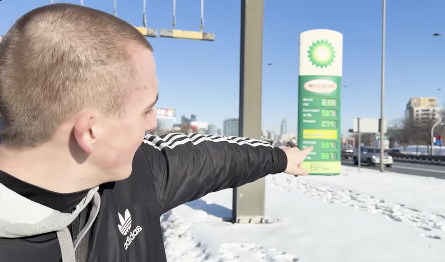 В Украине за 95 евро — 63.99 грн за литр (видео снималось до сильного повышения цен на фоне событий на Ближнем Востоке).