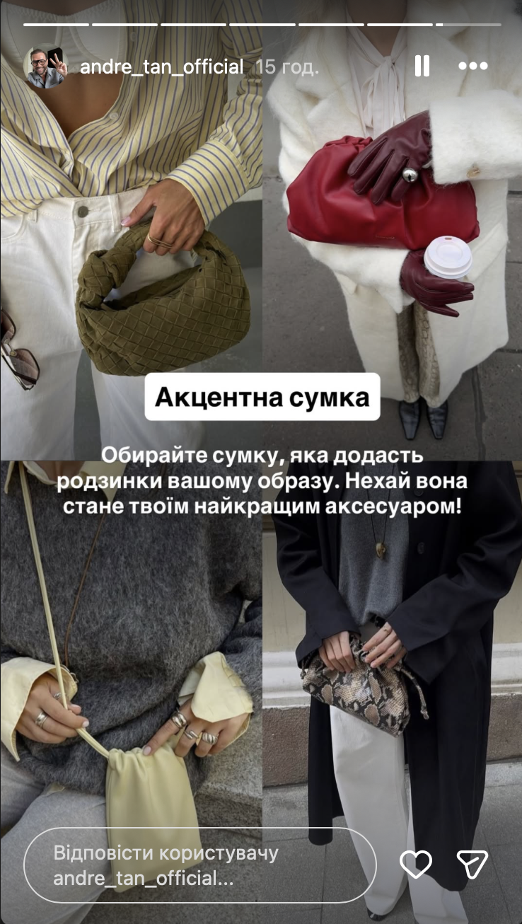 Андре Тан советует выбирать сумку, которая добавит изюминки вашему образу.
