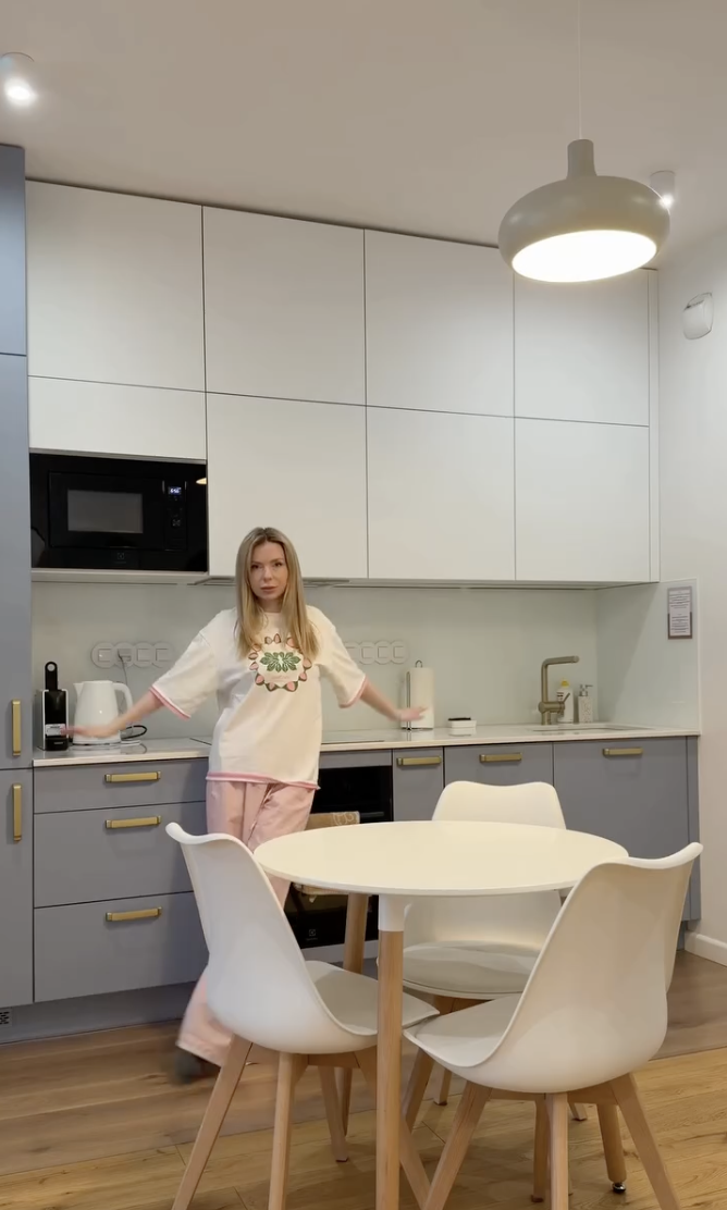 "В Варшаве бешено дорого и поэтому нам пришлось арендовать квартиру за 140 тысяч в месяц. Если вы себе представили пентхаус, то нет, это всего лишь 45 квадратов и количество сюрпризов на квадратный метр здесь достаточно. Если с такой арендой не будет хватать на рестораны, то здесь есть более-менее полноценная кухня, с техникой, посудомойкой и всеми видами ложек и вилок", — рассказала автор видео.