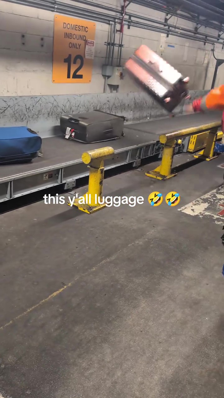 Работники аэропорта бросают багаж на ленту | Фото: TikTok