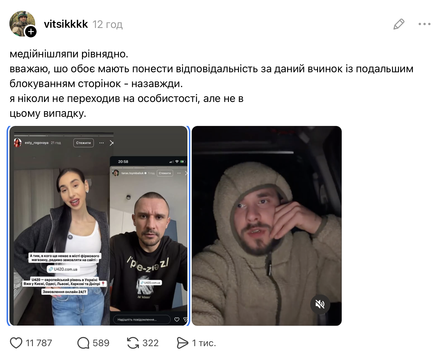 "Считаю, что оба должны понести ответственность за данный поступок с последующей блокировкой страниц — навсегда. Я никогда не переходил на личности, но не в этом случае", — написал он.