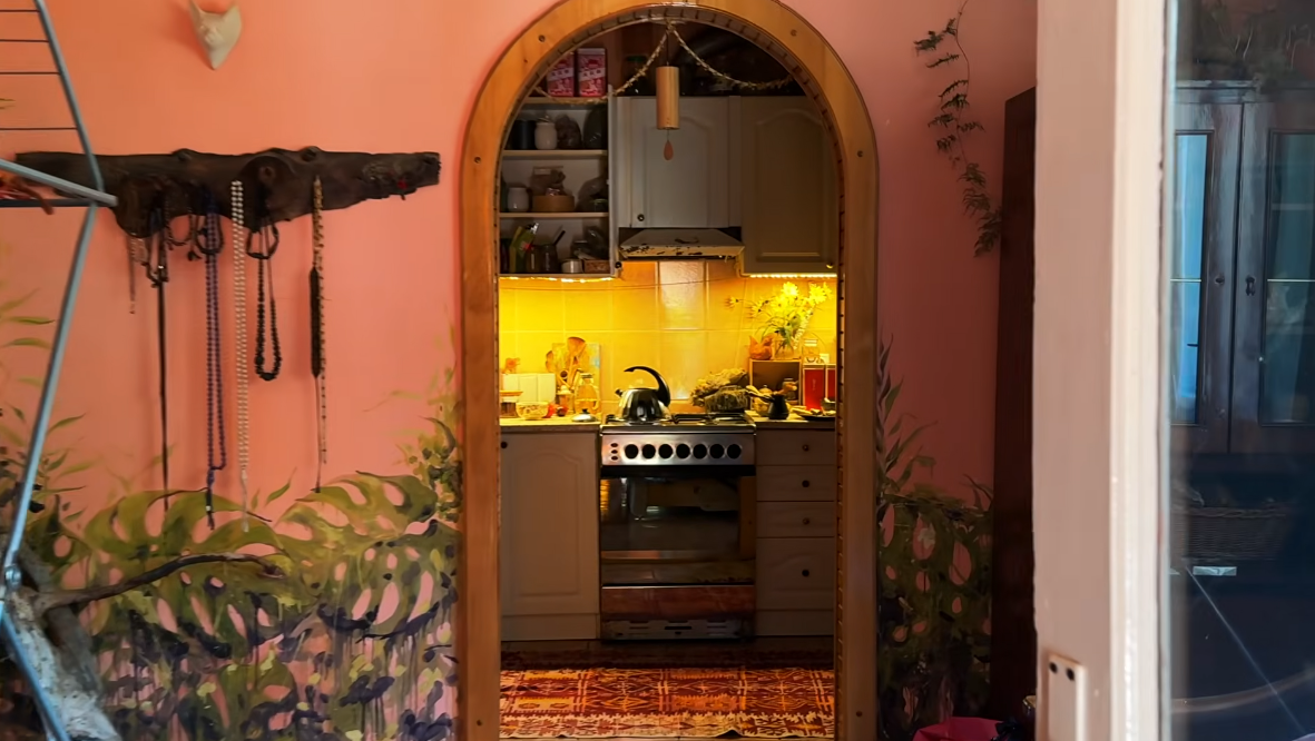 Героиня выпуска сначала провела блогерше экскурсию по своему скромному жилью. Показала кухню, обустроенную собственными силами, ванную комнату, а также рабочий кабинет, где она проводит большую часть времени.