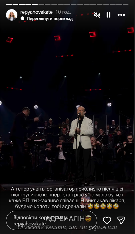 По словам Репьяховой, во время концерта выступление Павлика неожиданно остановили — якобы без запланированного антракта. Артисту, по ее утверждению, сказали, что он "ужасно поет" и предложили вызвать врача и сделать укол адреналина.