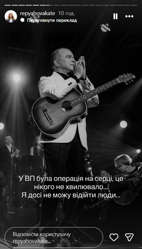 Екатерина Репяхова ранее заявила о психологическом давлении и угрозах со стороны организаторов во время юбилейного концерта 21 марта. По ее словам, она столкнулась с унижением и агрессивной коммуникацией, а зрителям якобы запрещали танцевать и дарить цветы артисту.