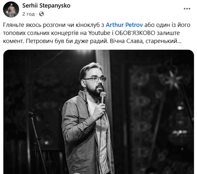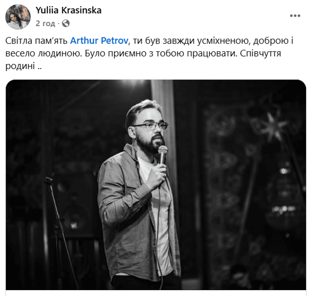 По имеющейся информации, Петров погиб 18 марта 2026 года в населенном пункте Купянск-Узловой на Харьковщине. Он попал под обстрел во время эвакуации раненых военных. Комик служил в рядах Вооруженных сил Украины с апреля 2025 года, а в последнее время — в составе 43-й отдельной механизированной бригады. Фокус рассказывает, что известно об Артуре Петрове.