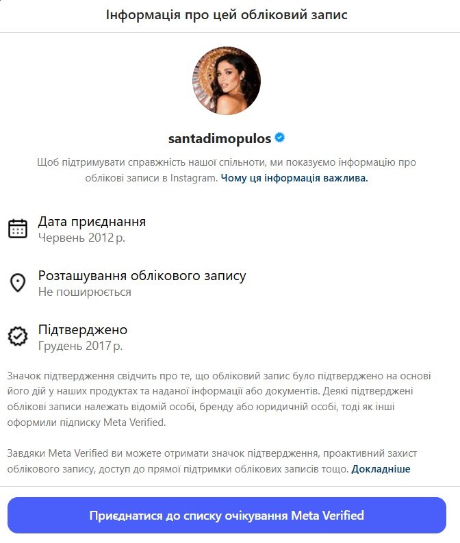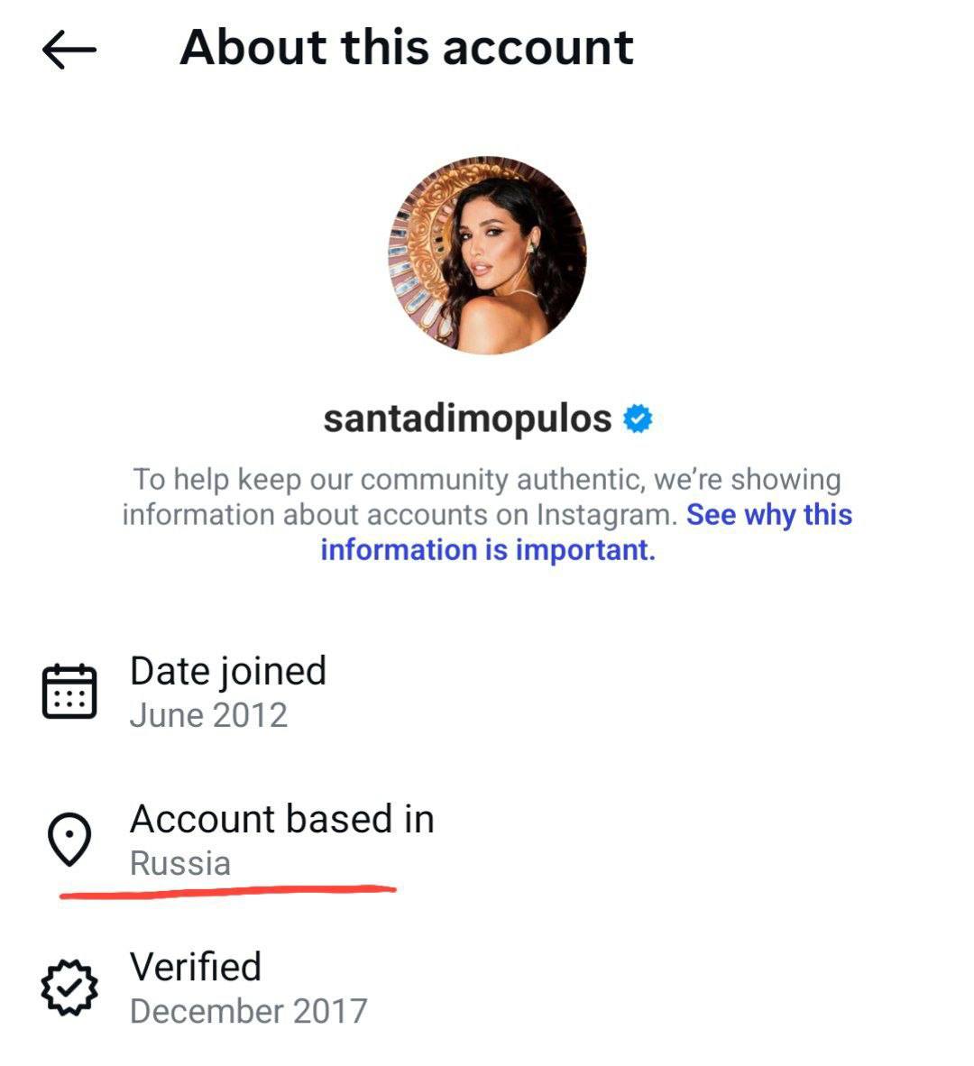Аккаунт Санты Димопулос ранее базировался в России