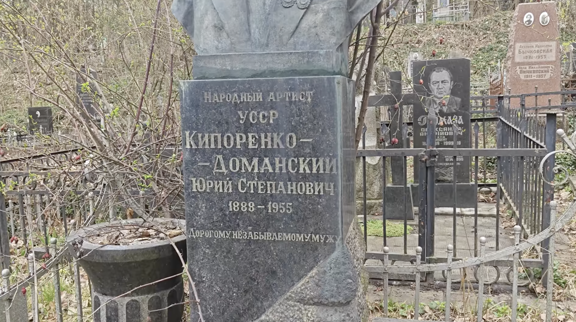 Сейчас же вокруг могилы Кипоренко-Доманского валяются пластиковые бутылки и сухие ветки. Хотя там и висит табличка "Охраняется союзом театральных деятелей Украины", там явно давно не убирали.