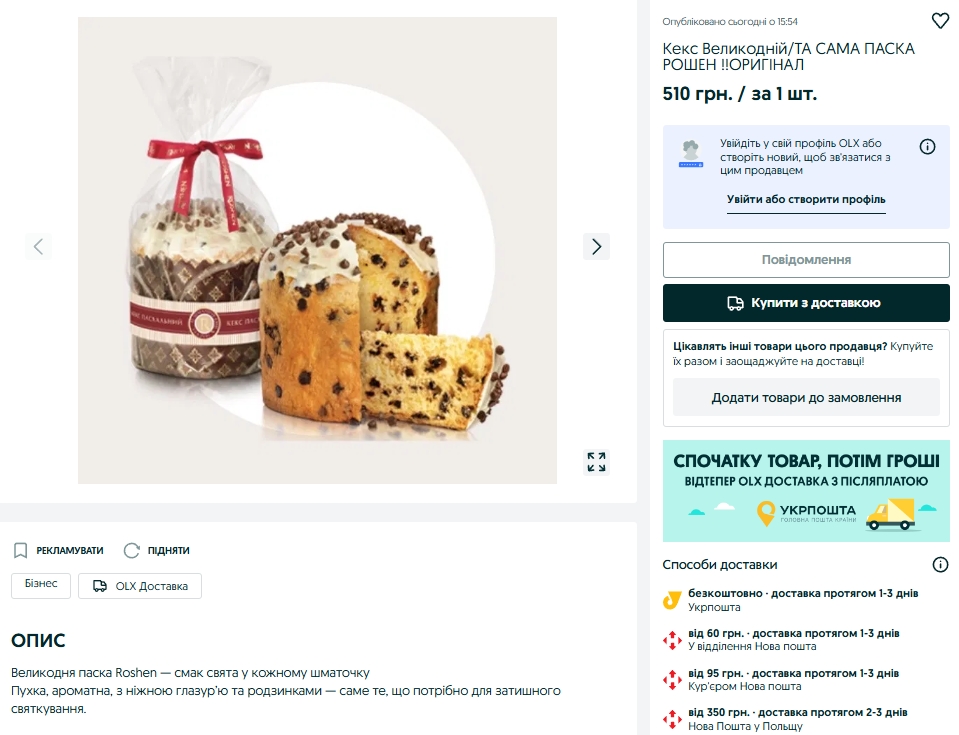600 грн вместо 298: самые дефицитные куличи от Roshen перепродают в интернете (фото, видео)