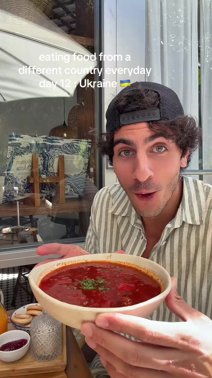 Блогер Уильям Сереметис пробует борщ | Фото: TikTok