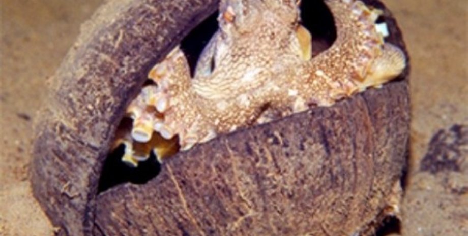 Биологи из Австралии и Великобритании выяснили, что осьминоги вида Amphioctopus marginatus "носят с собой" скорлупу кокосового ореха, которая при необходимости используется в качестве укрытия
