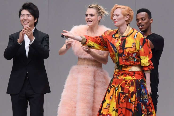 Друзья дизайнера почтили его память небольшими выступлениями. Амбассадор модного Дома Chanel Кара Делевинь появилась перед зрителями в пастельно-розовом платье. Модель трогательно призналась дизайнеру в любви и отметила, что он кардинально изменил ее жизнь. А потом объявила минуту молчания в память о Лагерфельде.
