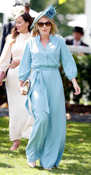 Для последнего дня скачек Отем выбрала голубой комбинезон с широкими брюками, что уже стало неожиданностью, ведь обычно дамы предпочитают платья и юбки, и кокетливую шляпку с розой.
