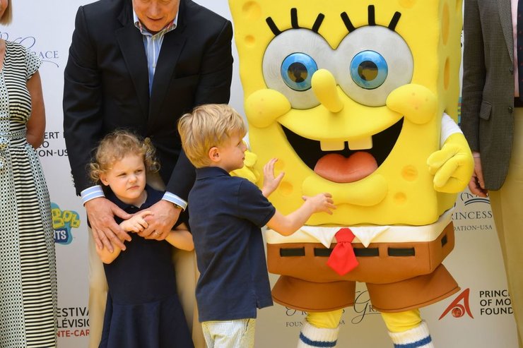 Телегерою принца и принцессу представил их отец, князь Монако Альбер. Сначала близнецы стеснялись, но потом осмелели и даже обнялись с Губкой Бобом и Морской Звездой Патриком.