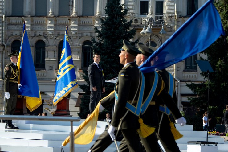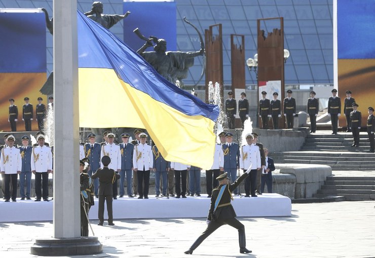 На Майдане Независимости президент выступил с речью. Он отметил, что каждое утро начинаю с сообщений Генштаба про обстрелы на Донбассе и потери среди наших военных. Напомнил, что Украина имеет большую историю, а 28 лет независимости хоть и были непростыми, но украинцы прошли их с честью.
