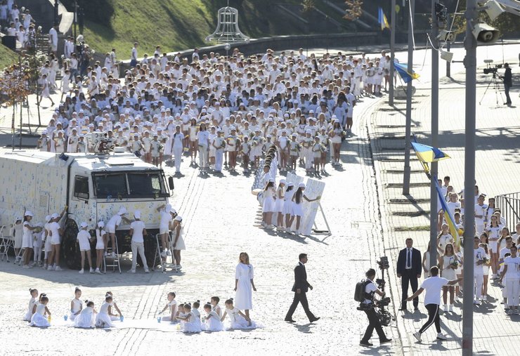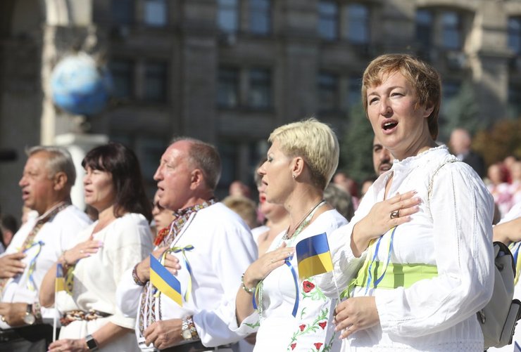 Одним из главных элементов нынешних официальных мероприятий стало необычное исполнение государственного гимна, которое длилось около семи минут. Его исполняли около 600 человек, в том числе военный хор, оперные певцы, участница детского Евровидения Дарья Красновецкая, Тина Кароль и Алина Паш.