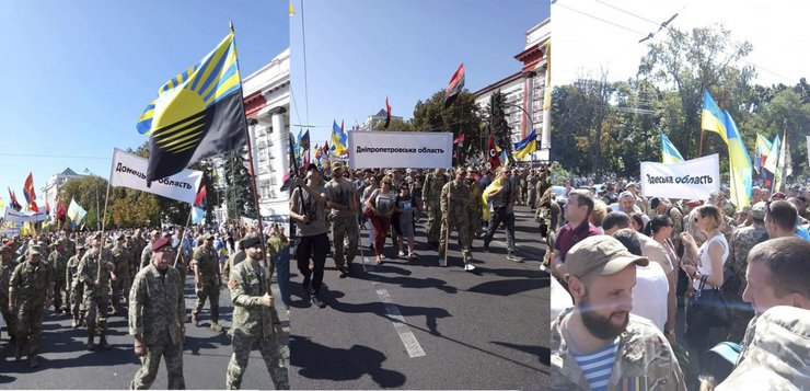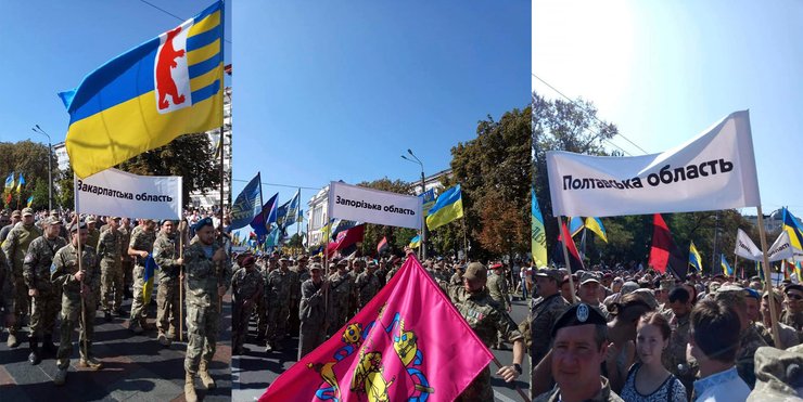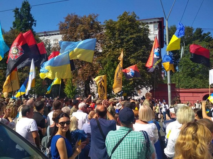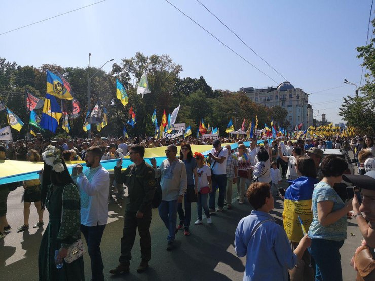 После вручения наград официальная часть празднеств завершилась. Тем временем в парке Шевченко собирались участники альтернативного Марша защитников Украины. Шествие стартовало с опозданием – в 11:30. На него пришло большое количество людей, которые разместились в нескольких колоннах.