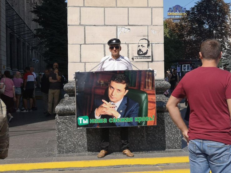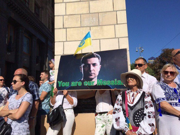 На Майдане можно было увидеть и рьяных сторонников Зеленского. Одни видели в нем "мессию", другие – "свежую кровь".
