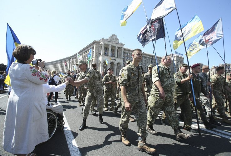 В Киеве прошли альтернативные шествия военных ветеранов в честь государственного праздника.