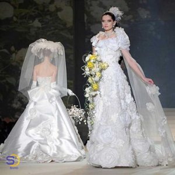 Свадебное платье нынешней испанской королевы Летиции стоимостью $10,7 миллионов от Manuel Pertegaz – это шедевр из шелка цвета слоновой кости с цветочной вышивкой золотыми нитями, символизирующей королевскую элегантность. Цена делает его одним из самых дорогих свадебных платьев в истории. Ансамбль королевы включал в себя высокий стоячий воротник, длинные рукава и V-образный вырез, открывающий сложную вышивку, изображающую символы с герба принца Астурийского.