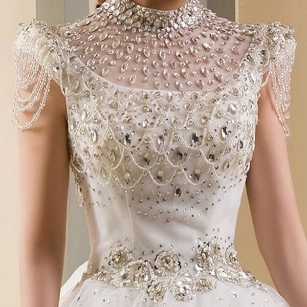Стоимость платьев обусловлена использованием эксклюзивных тканей и редчайших драгоценных камней.