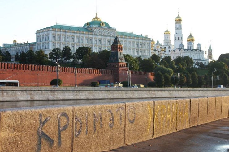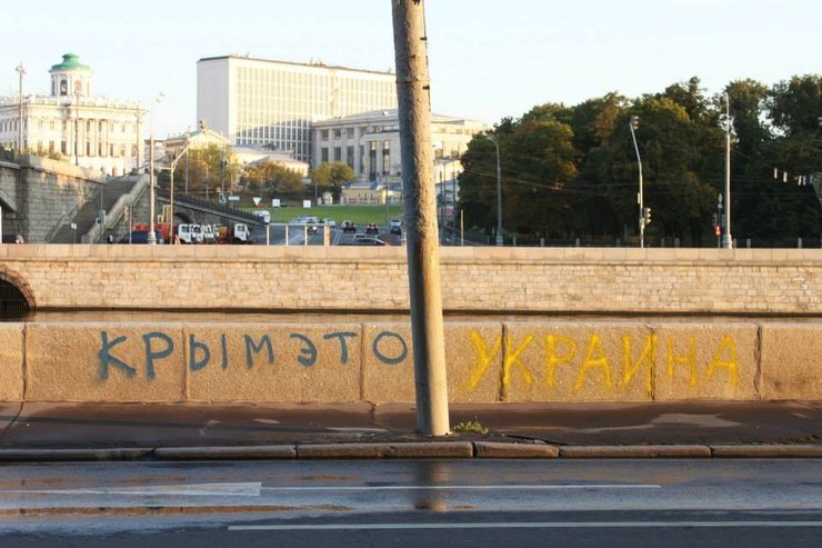 В центре Москвы появились сине-желтые надписи "Крым - это Украина"