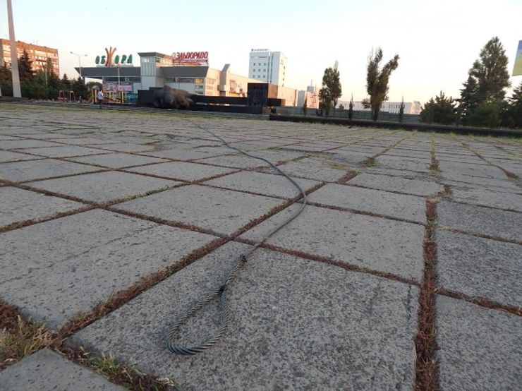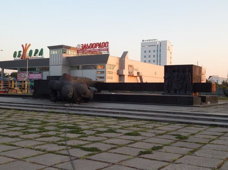 Около 5:45 остатки монумента на пересечении проспектов Строителей и Ленина в Мариуполе выглядели так: