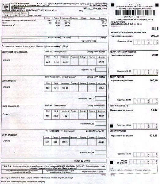 "Новый платежный документ состоит из пяти блоков, в каждом из которых четко определен вид услуги и предприятие, ответственное за ее поставку", - цитирует "РБК-Украина" Пантелеева.
