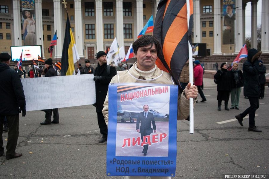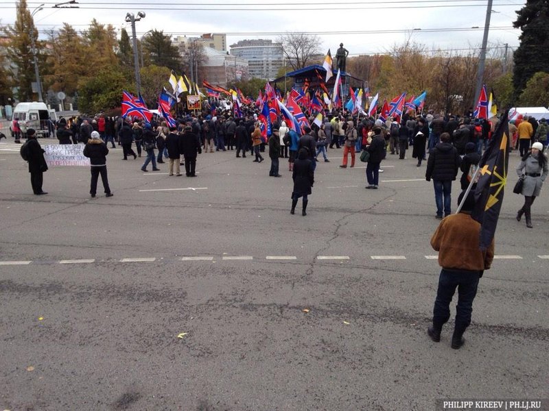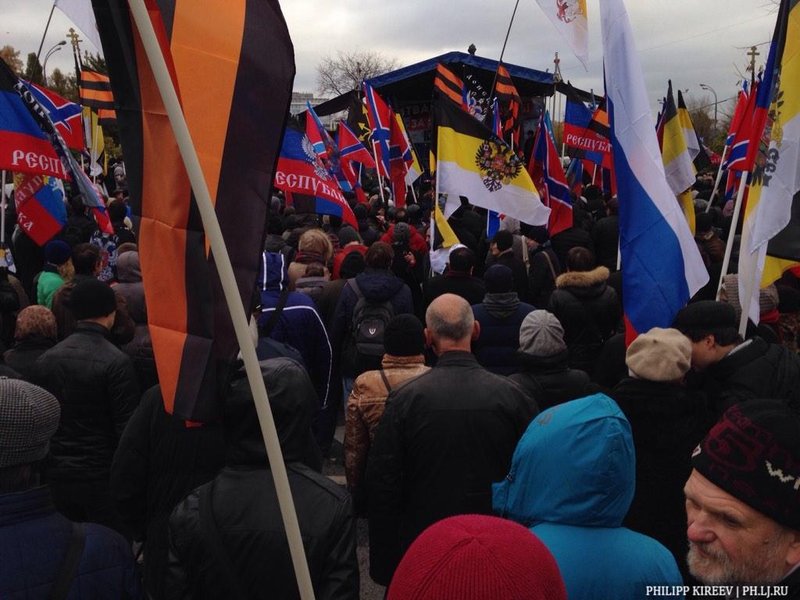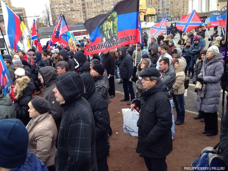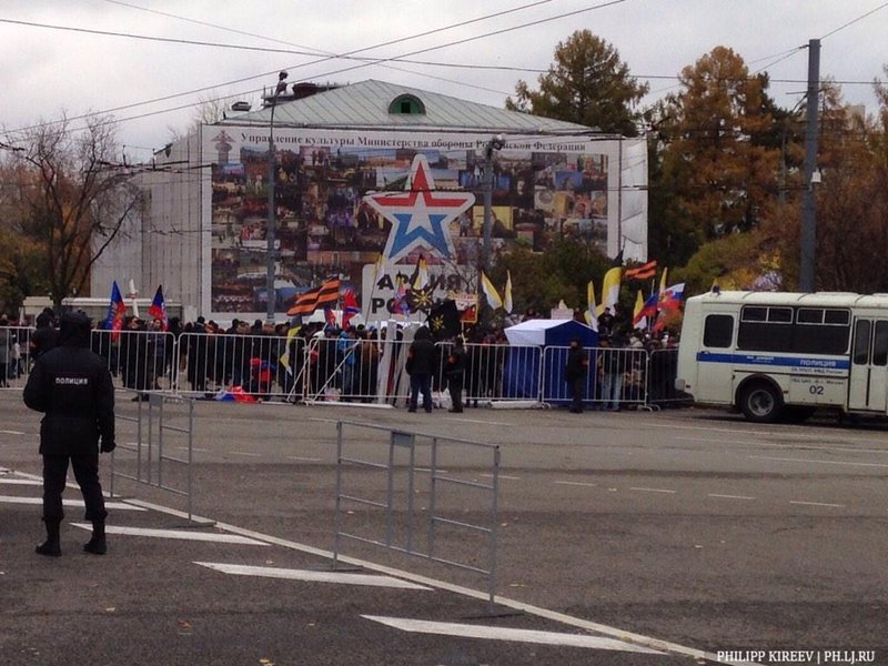 Самая многочисленная акция в поддержку сепаратистов на востоке Украины прошла в Москве 27 сентября на Поклонной горе. По данным МВД, туда пришли 17 тысяч человек, однако наблюдатели сообщали о пяти тысячах.