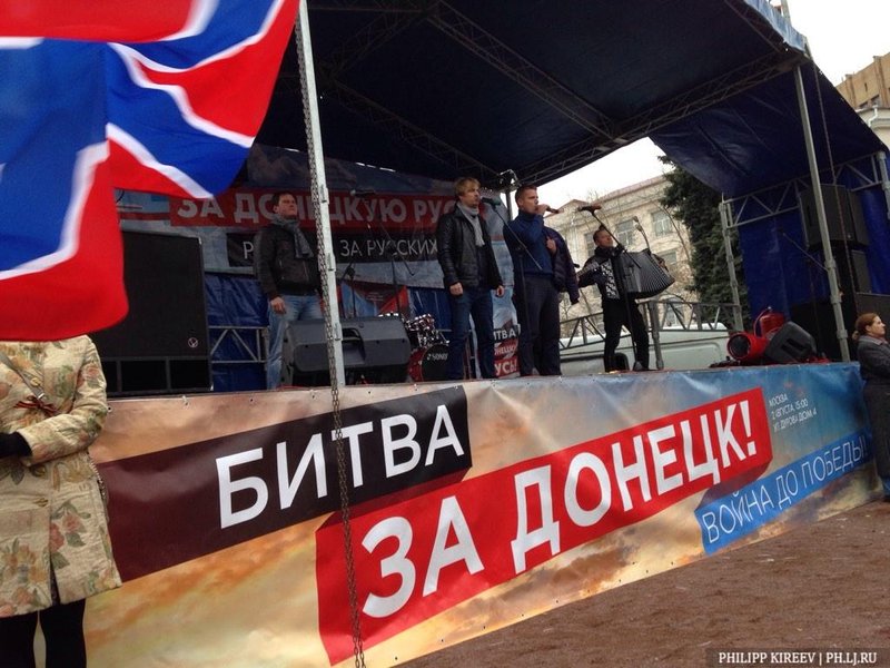 В Москве на Суворовской площади прошла акция в поддержку сепаратистов востока Украины "Битва за Донбасс", сообщает BBC.