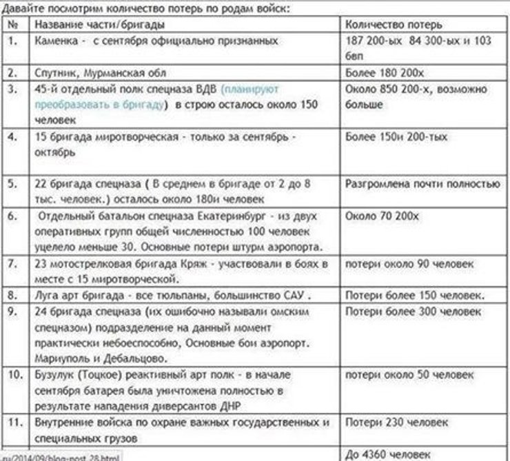 Она приводит известный ей список потерь среди российских военных в Украине.