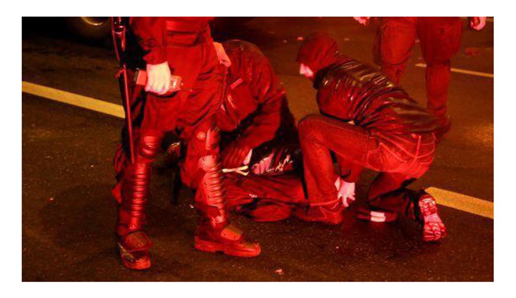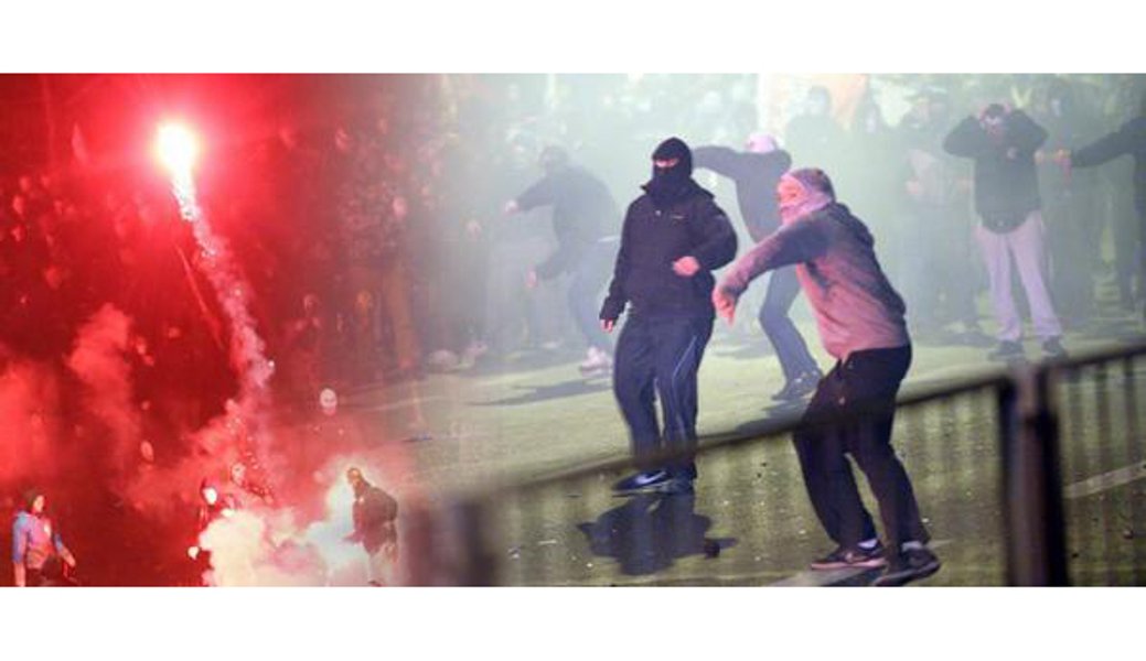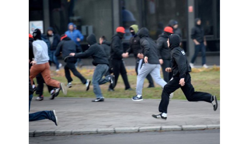 Для усмирения хулиганов, забрасывавших стражей порядка петардами, файерами и камнями, полиция была вынуждена применить водометы.