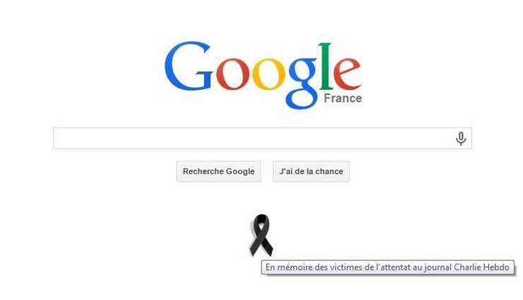 Стартовую страницу Google во Франции отметили траурной лентой