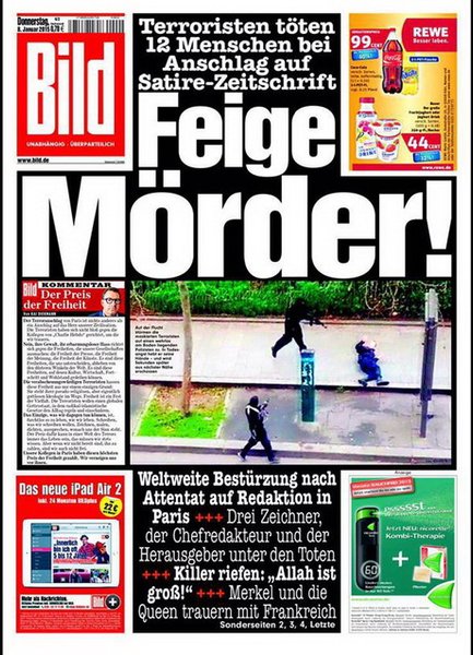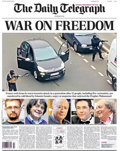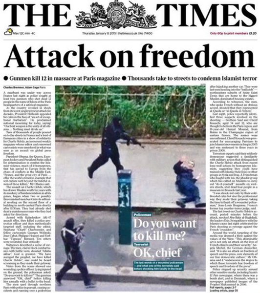 Большинство изданий демонстрирует протест против давления на свободу слова и выражает солидарность с французскими журналистами