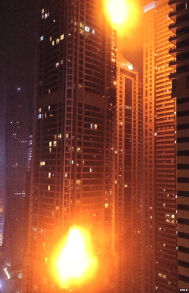 Пожар в Дубайском факеле - высочайшем жилом доме мира