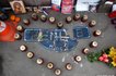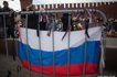 Они собрали в пластиковые мешки для мусора и унесли цветы, фотографии и свечи, принесенные москвичами на Большой москворецкий мост.