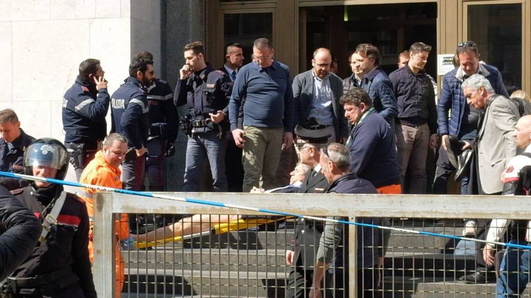 По первым данным, огонь из пистолета открыл предприниматель Клаудио Джардиелло. Предположительно, он все еще находится в здании суда.