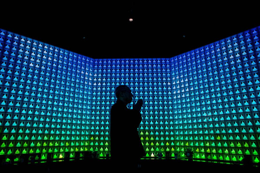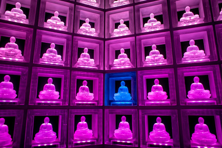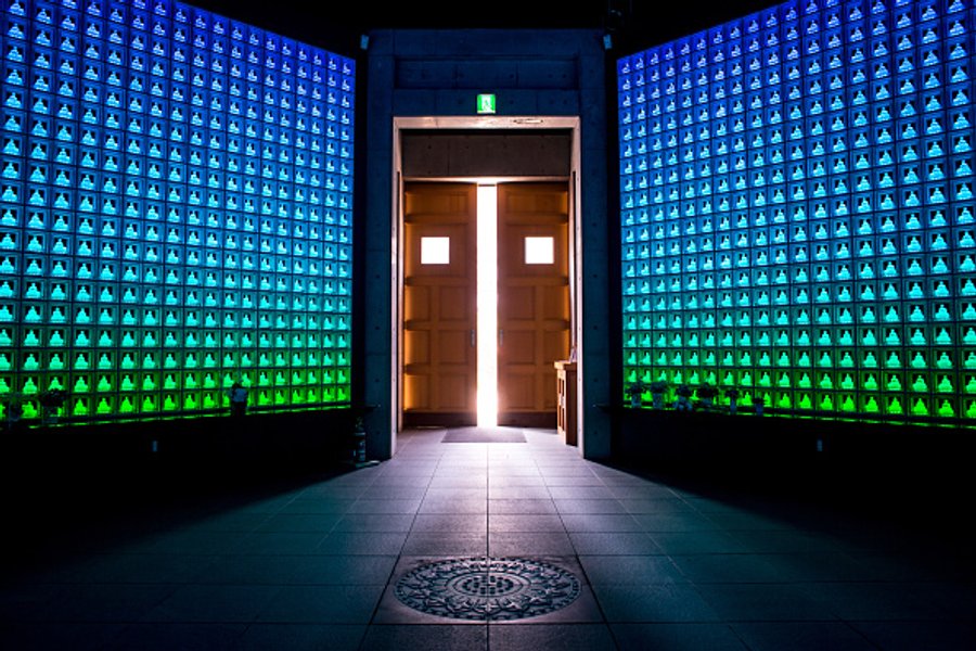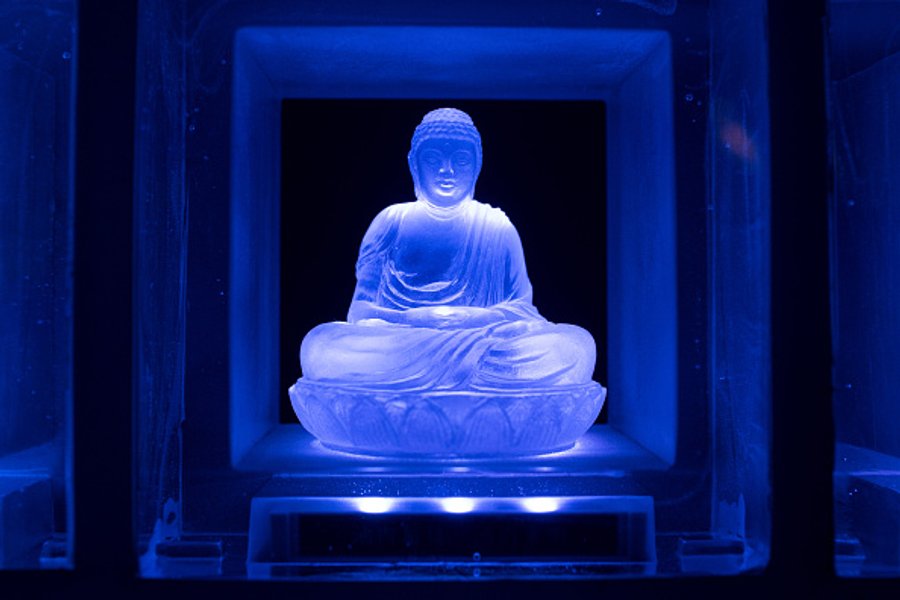 Руриден представляет собой колумбарий с двумя тысячами алтарями и стеклянными статуями Будды над прахом покойного