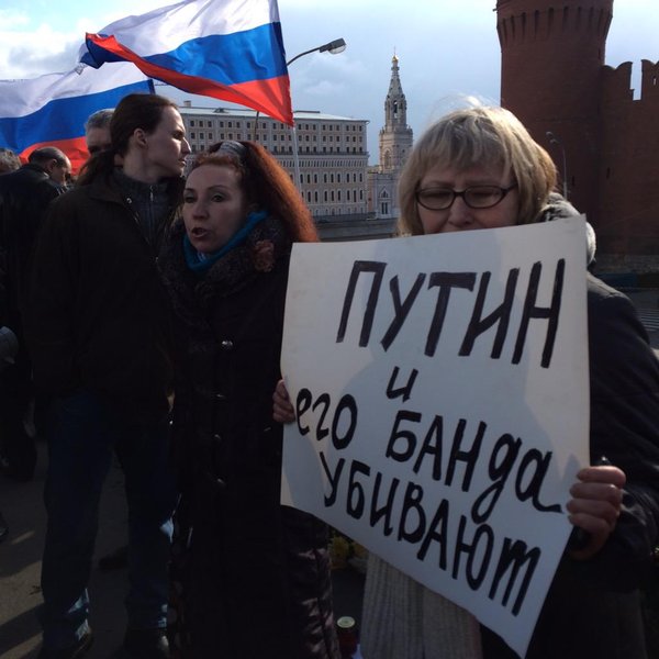 Задержания продолжились на Большом Москворецком мосту, куда люди отправились возложить цветы к месту убийства оппозиционного политика Бориса Немцова и также стали разворачивать плакаты для одиночных пикетов.