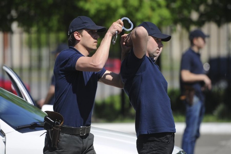 Кадеты патрульной службы МВД во время практического занятия в Национальной академии внутренних дел в Киеве
