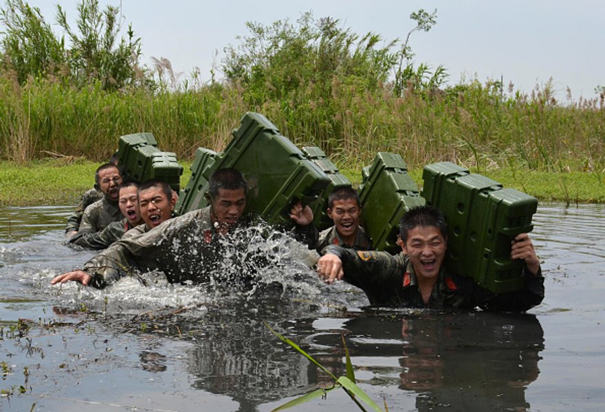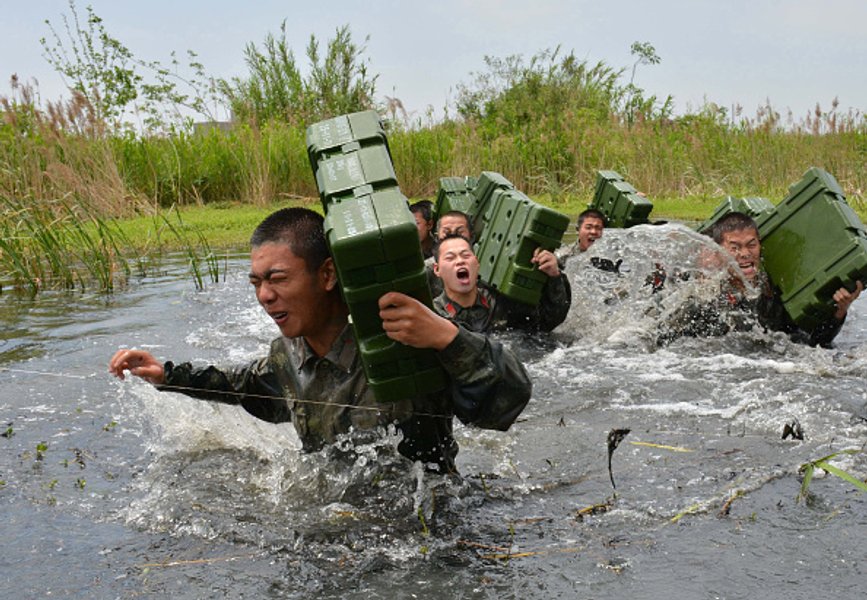 Китайский спецназ провел тренировку в городском округе Чучжоу, провинция Аньхой. Этот отряд - одно из подразделений Сил быстрого реагирования Китая. В его функции входит разведка, антитеррористическая деятельность, в том числе уничтожение формирований сепаратистов.