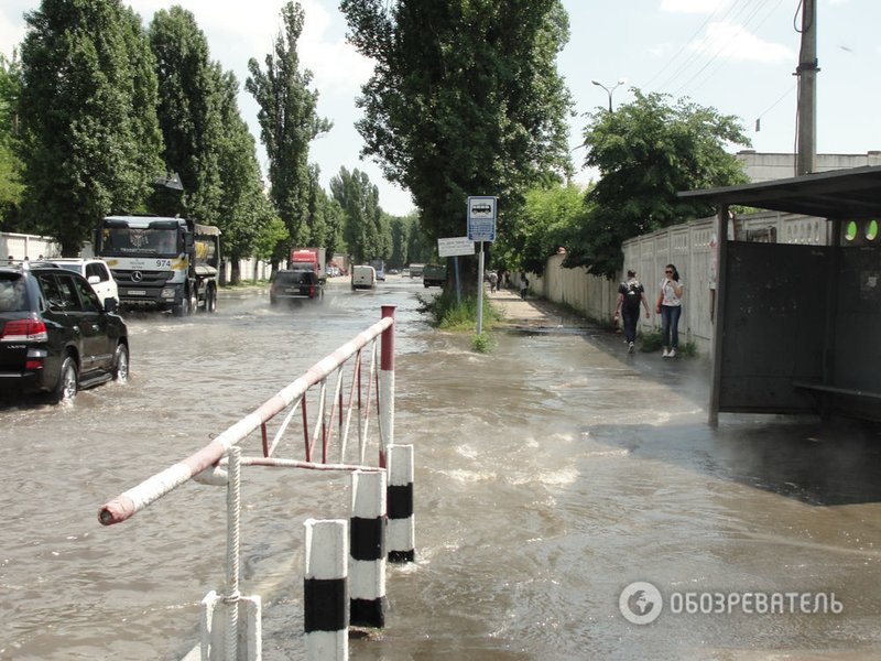 В результате прорыва на проезжей части образовалось "озеро". Температура воды составляла 50-60 градусов, глубина лужи в некоторых местах достигала 40-50 см.
