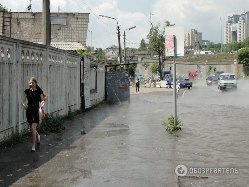 В Голосеевском районе Киева недалеко от станции метро "Выдубичи" прорвало трубу горячего водоснабжения