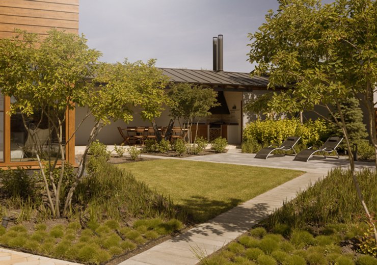 Уличная BBQ-зона во дворе объединена с кухней. Ландшафтный дизайн на участке разработали в студии V Pole Design.