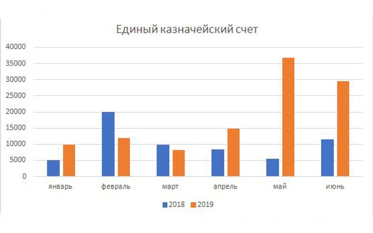 Прежде всего, хочется отметить динамику "Единого казначейского счета" (далее ЕКС) которая выглядит более сильной по отношению к 2018 г., при этом пиковые майские выплаты по государственному долгу уже пройдены. Это говорит о том, что правительству хватает финансовых ресурсов платить по долгам как внешним, так и внутренним - и в то же время держать на ЕКС достаточно высокие остатки по отношению к прошлому году.