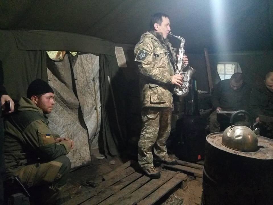 Далі, із футляру, схожого на чохол для секретної зброї, підполковник (так, так – підполковник , не забувайте, що наша команда є військовою) Андрій Бондарь діставав саксофон і починали звучати джаз, який і в мирні часи тут мабуть ніколи не лунав. Трошки фантасмагоричне поєднання – вибухи мін, стіни бліндажів і "Lily Was Here". Канді Дафлер, мабуть, була б вражена.