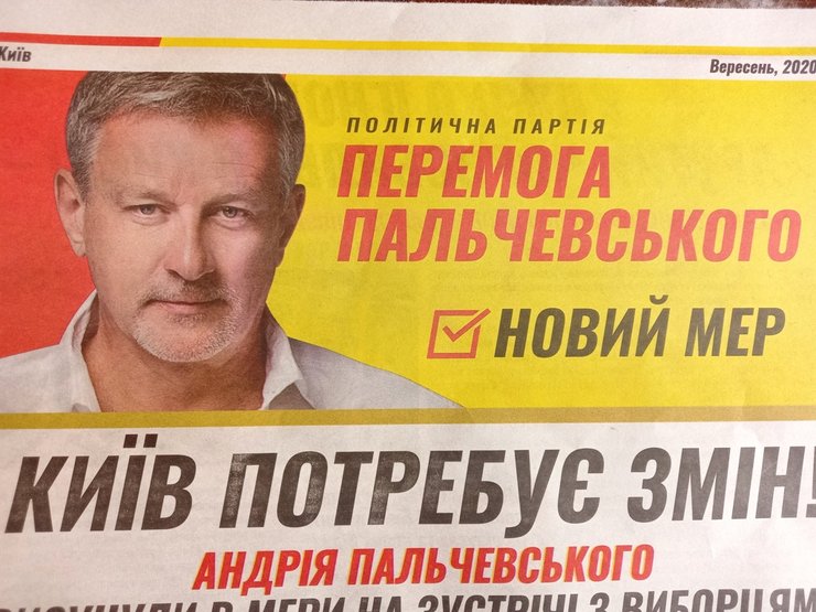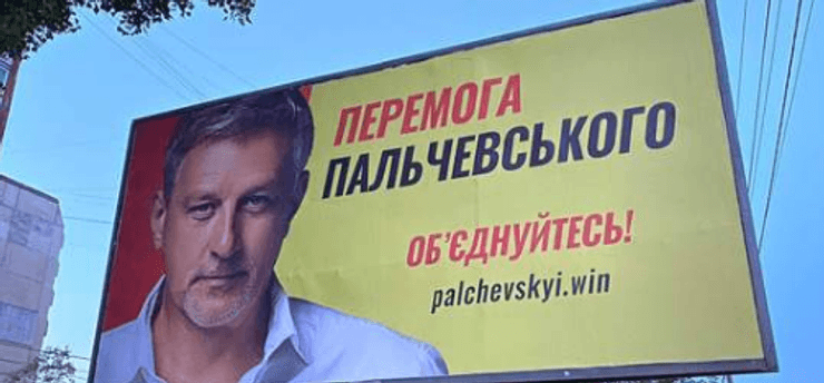 На втором месте по навязчивости и противоречивости, пожалуй, рекламная продукция бизнесмена Андрея Пальчевского. Со всех сторон мы читаем: "Перемога Пальчевського". Так называется его партия. По факту, Пальчевский ничего не предлагает, кроме своей победы.