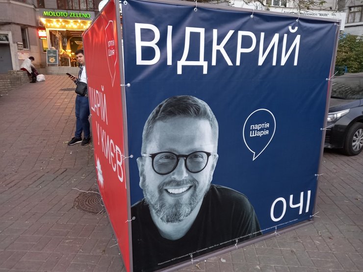 Любопытна креативная составляющая у противоположного по политическому лагерю нацпатриотам – Анатолия Шария (речь идет о выборах в горсовет). На агитационных кабинках с его портретом в темным очках указано: "Открой глаза". С одной стороны – вроде бы это призыв к нам – избирателям – открыть глаза.