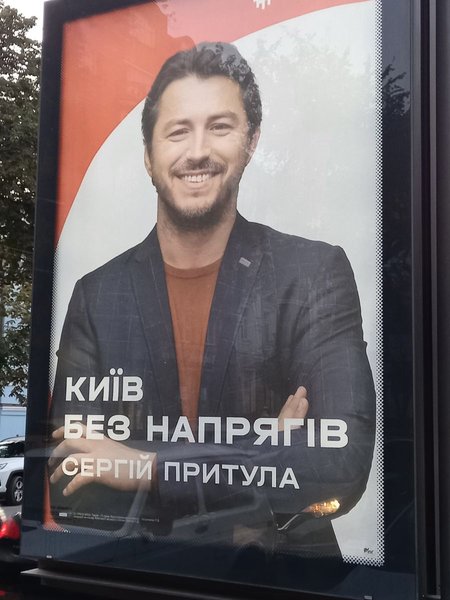 Отчасти, это даже честно – остальные хоть что-то обещают, а этот ничего кроме себя: "Новый мэр Пальчевский". Вся рекламная кампания крутится исключительно вокруг его персоны. Какой отсюда можно сделать вывод? Пальчевский – нарцисс, поскольку весь визуальный и смысловой ряд зациклен на его особе.