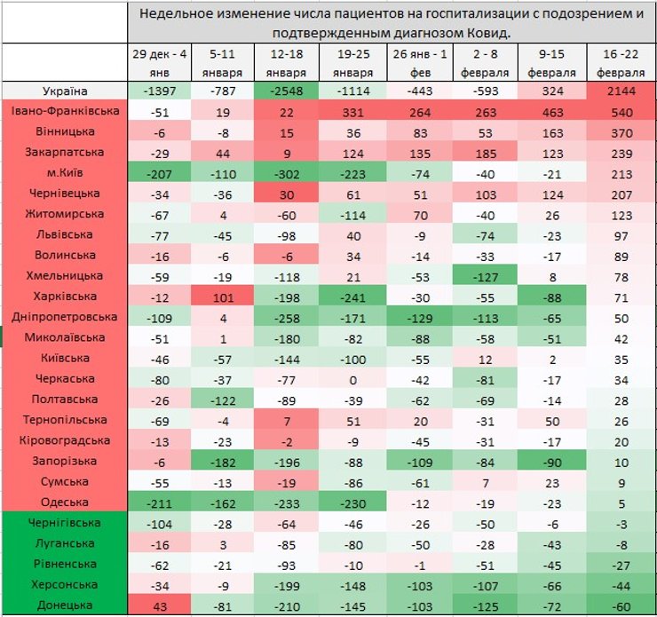 За прошедшую неделю рост заболеваемости был отмечен в 19 областях и Киеве, осталось всего 5 областей, где наблюдается снижение госпитализаций.